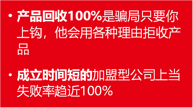四、項(xiàng)目騙局實(shí)施者所在公司成立時(shí)間都很短,老板幾乎都是不懂專業(yè)技術(shù)的門外漢,實(shí)際上,選擇專業(yè)設(shè)備生產(chǎn)很重要、選擇有壁壘有科技含量的技術(shù)同樣重要,否則,盡管前期設(shè)備投資少,最終還是因產(chǎn)品質(zhì)量差損失慘重;
