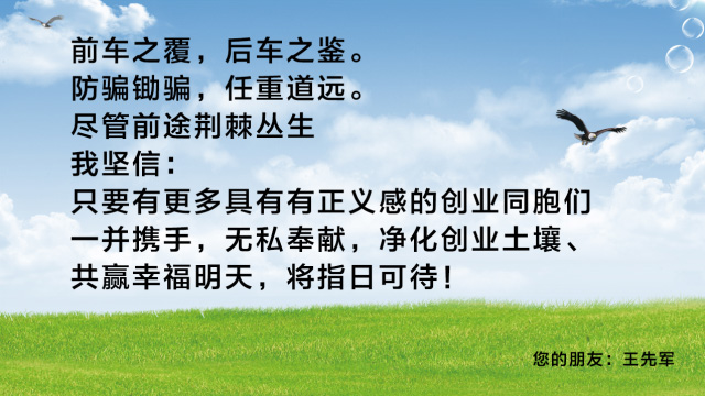 十四、項(xiàng)目騙局實(shí)施者的網(wǎng)站上處處呈現(xiàn)虛假誘惑宣傳,都有一個(gè)所謂的明星代言照片誘惑你,虛假宣傳諸如千元起步、萬元?jiǎng)?chuàng)業(yè)等形式千姿百態(tài),凡是點(diǎn)開網(wǎng)站就出現(xiàn)聯(lián)系方式或看不到公司名稱的現(xiàn)象的,凡是網(wǎng)站上呈現(xiàn)無數(shù)個(gè)XX經(jīng)理及手機(jī)號(hào)并排顯示的,100%是騙局,其目的就是通過電話給你洗腦;