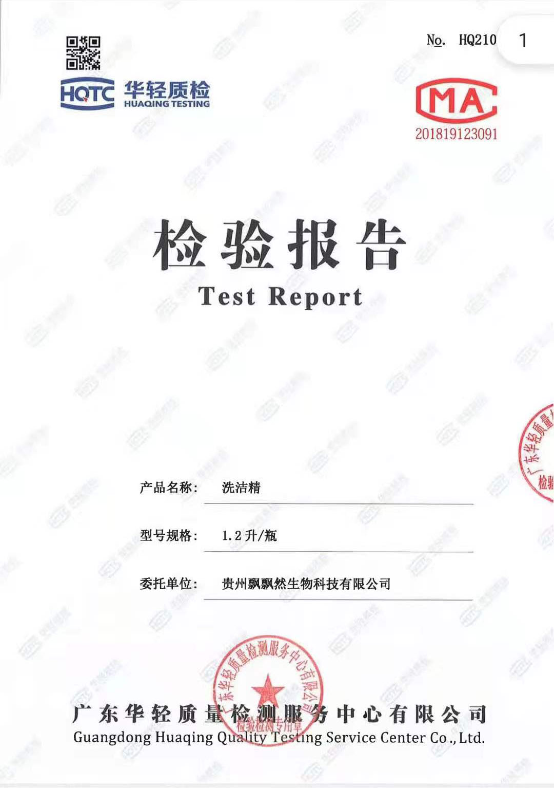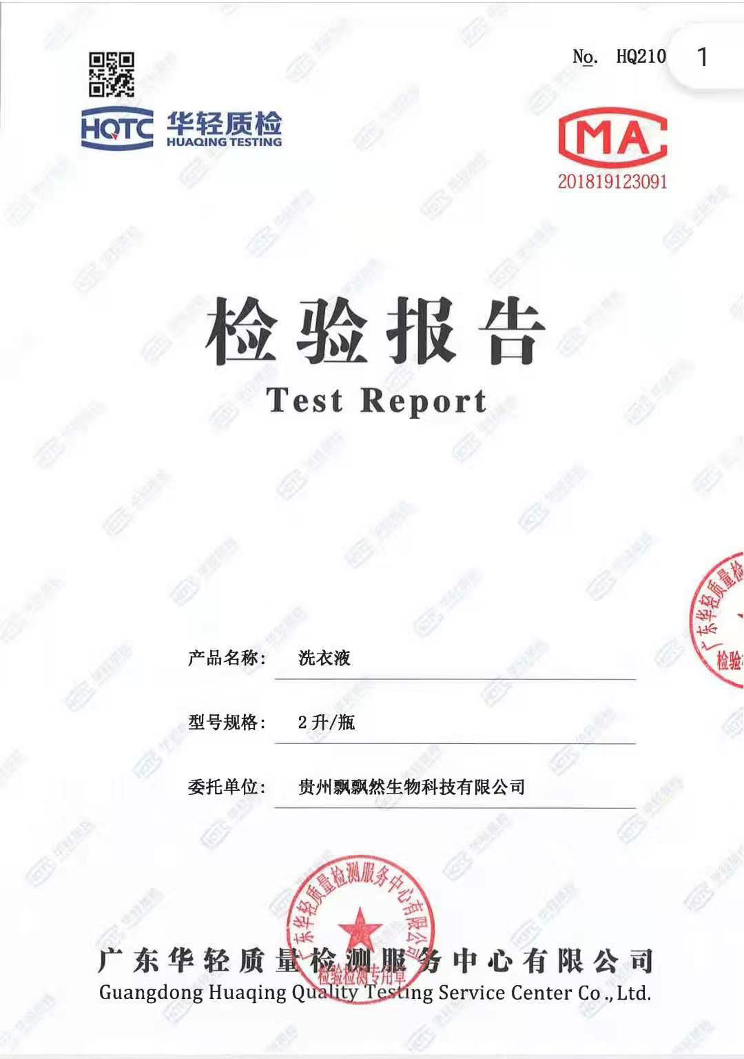祝賀貴州飄飄然洗潔精洗衣液產(chǎn)品通過CMA質(zhì)量檢測合格!