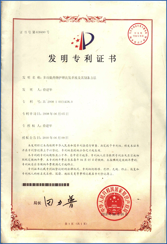2008年06月曾獲洗發(fā)水技術(shù)發(fā)明專利