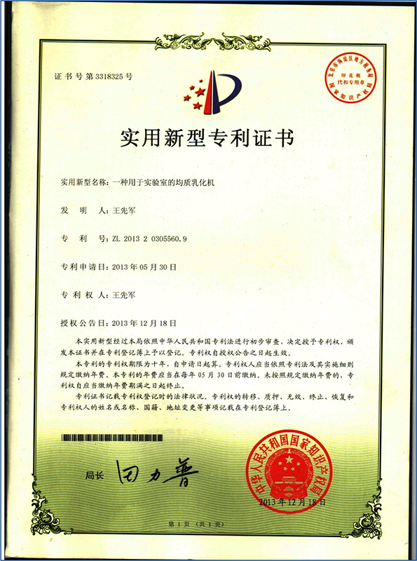 2013年05月曾獲得均質(zhì)乳化機國家專利