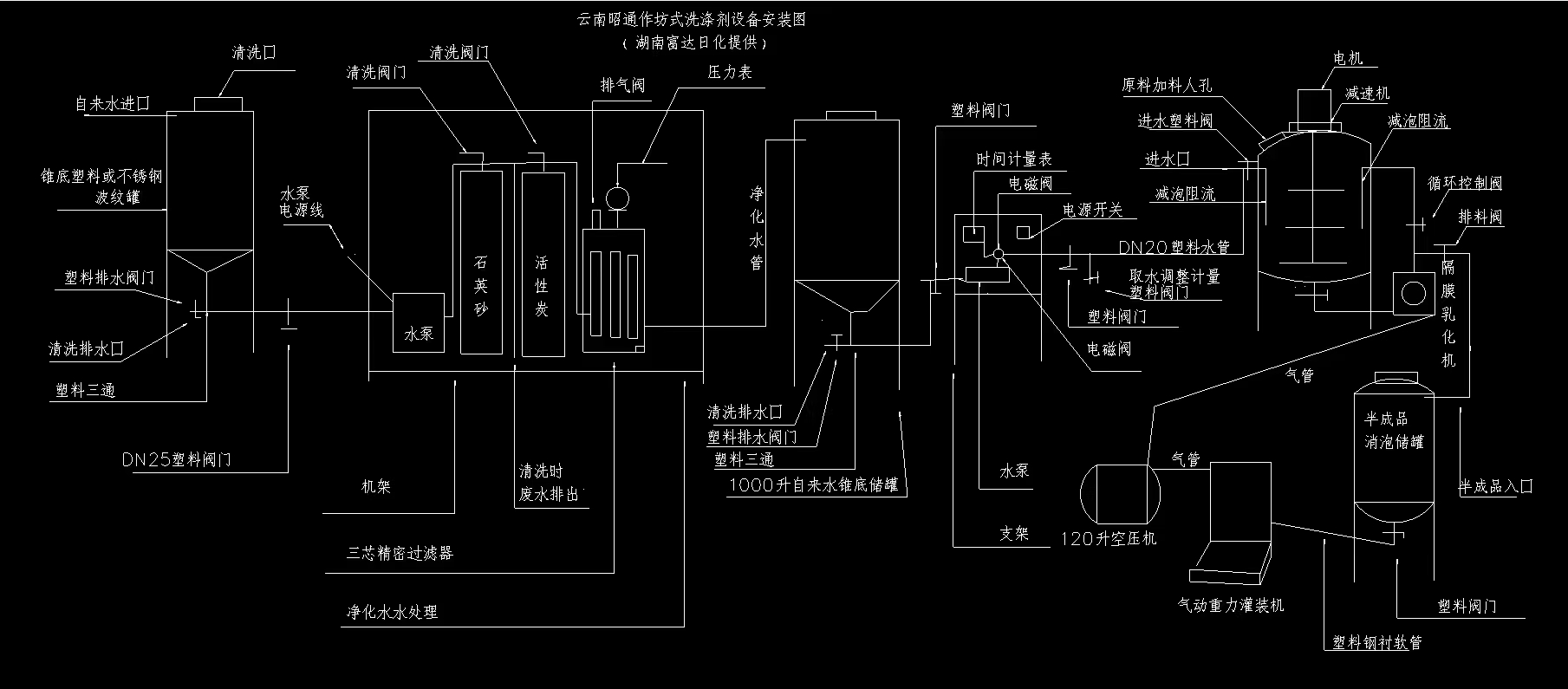 富達(dá)日化家庭作坊式洗滌設(shè)備安裝示意圖