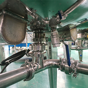 2)洗潔精設(shè)備結(jié)構(gòu):包含攪拌裝置,分散剪切裝置,循環(huán)乳化裝置,減泡裝置,小樣回流系統(tǒng),夾層水域恒溫裝置,產(chǎn)品溫顯裝置,控制箱等;