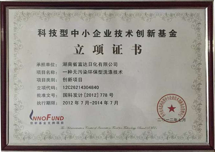 1.2012年獲得國(guó)家科技部”一種無污染環(huán)保型洗滌技術(shù)“技術(shù)創(chuàng)新基金;