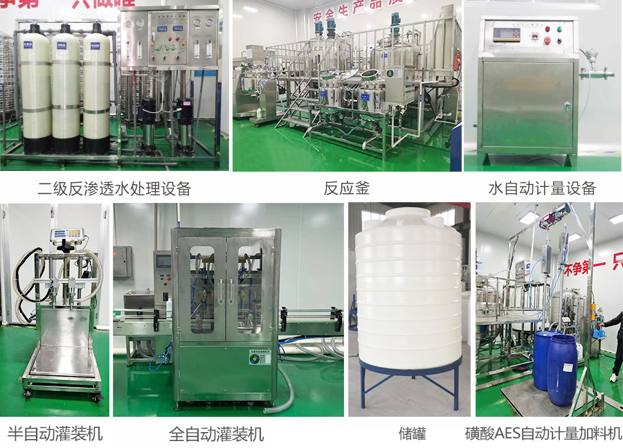 設(shè)備多功能:能一機(jī)多用生產(chǎn)洗潔精,84消毒液,洗衣液,洗發(fā)水,沐浴露等100多種液態(tài)洗滌產(chǎn)品 |